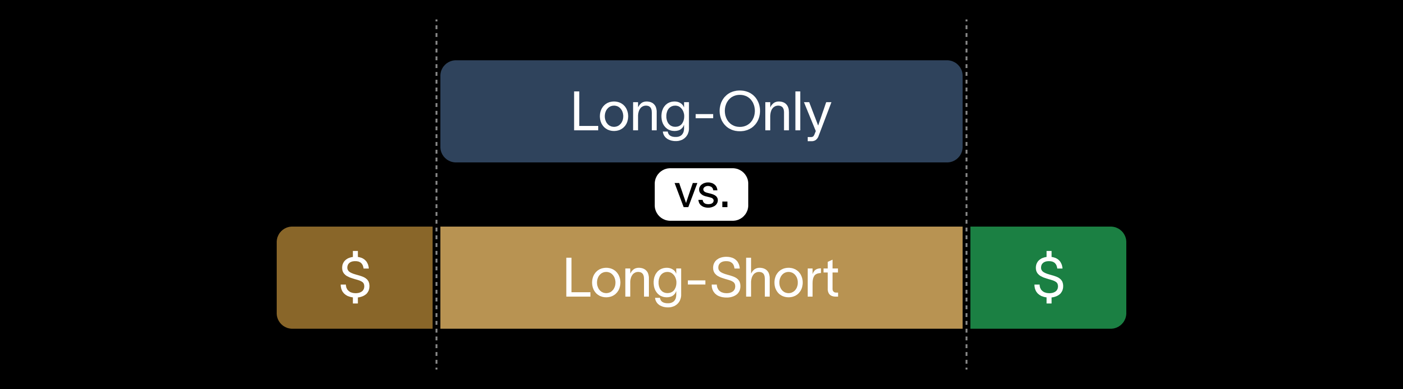 In simple terms, a long-short manager borrows additional dollars using your portfolio as collateral and invests in the market. A nearly equal dollar amount is sold short (i.e., a bet against the market) to ensure that your overall market exposure remains at 100%. For example, in a 130/30 setup, an investor deposits $100 of cash and stocks into the account, and the manager borrows $30 of cash to buy additional stocks (the “long” leg). An additional $30 of stocks is borrowed and immediately sold to the market (the “short” leg), with the cash proceeds held in escrow. This series of transactions maintains a net exposure of $100 ($100 + $30 − $30), but a gross exposure of $160. The additional $60 is used to enhance tax‑loss harvesting opportunities without deviating from the original investment objective.